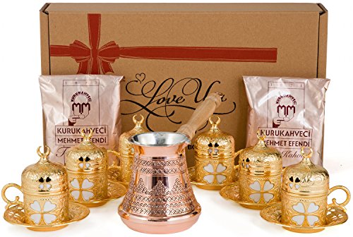 CopperBull Premium Turkish Greek Coffee Espresso Full Set with Copper Pot, Cups, Coffee for 6 (Gold), hopefully can help you in buying the product.